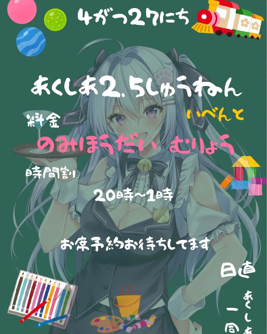本日は2.5周年イベントです😊席ほぼ埋まってるから来るときは連絡して貰えるとありがたいですm(__"m)📅今週の出勤スケジュール4/28(月)みこすいさくら(体入🔰)4/29(火)さなすい4/30(水)定休日5/1(木)みこす…