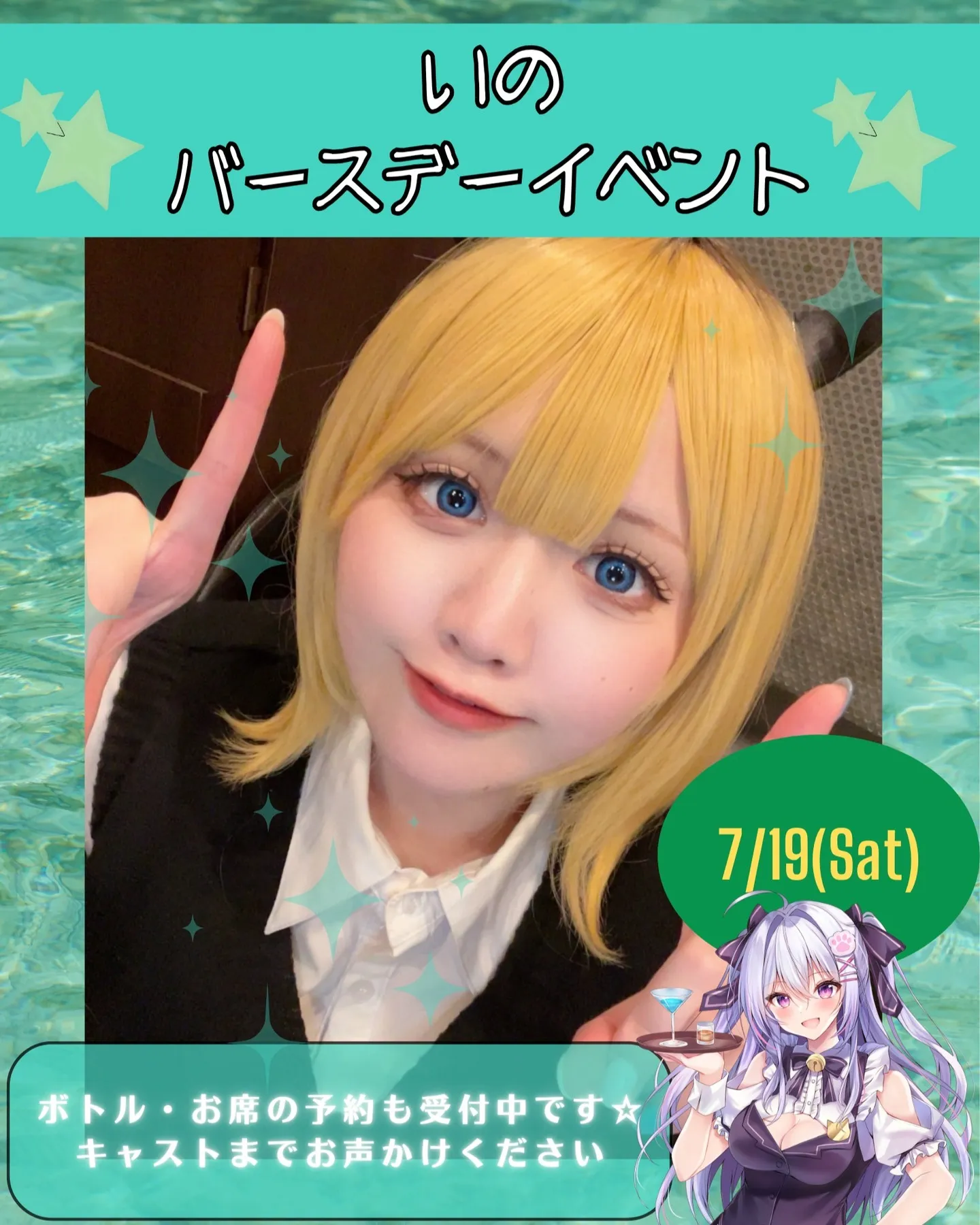 今週はいよいよいのちゃんBDイベントです😊席はまだ予約可能ですので是非是非お待ちしてます✨📅今週の出勤スケジュール7/14(月)すいにった7/15(火)みこさな7/16(水)定休日7/17(木)みこすいひな7/18(金)みこ…